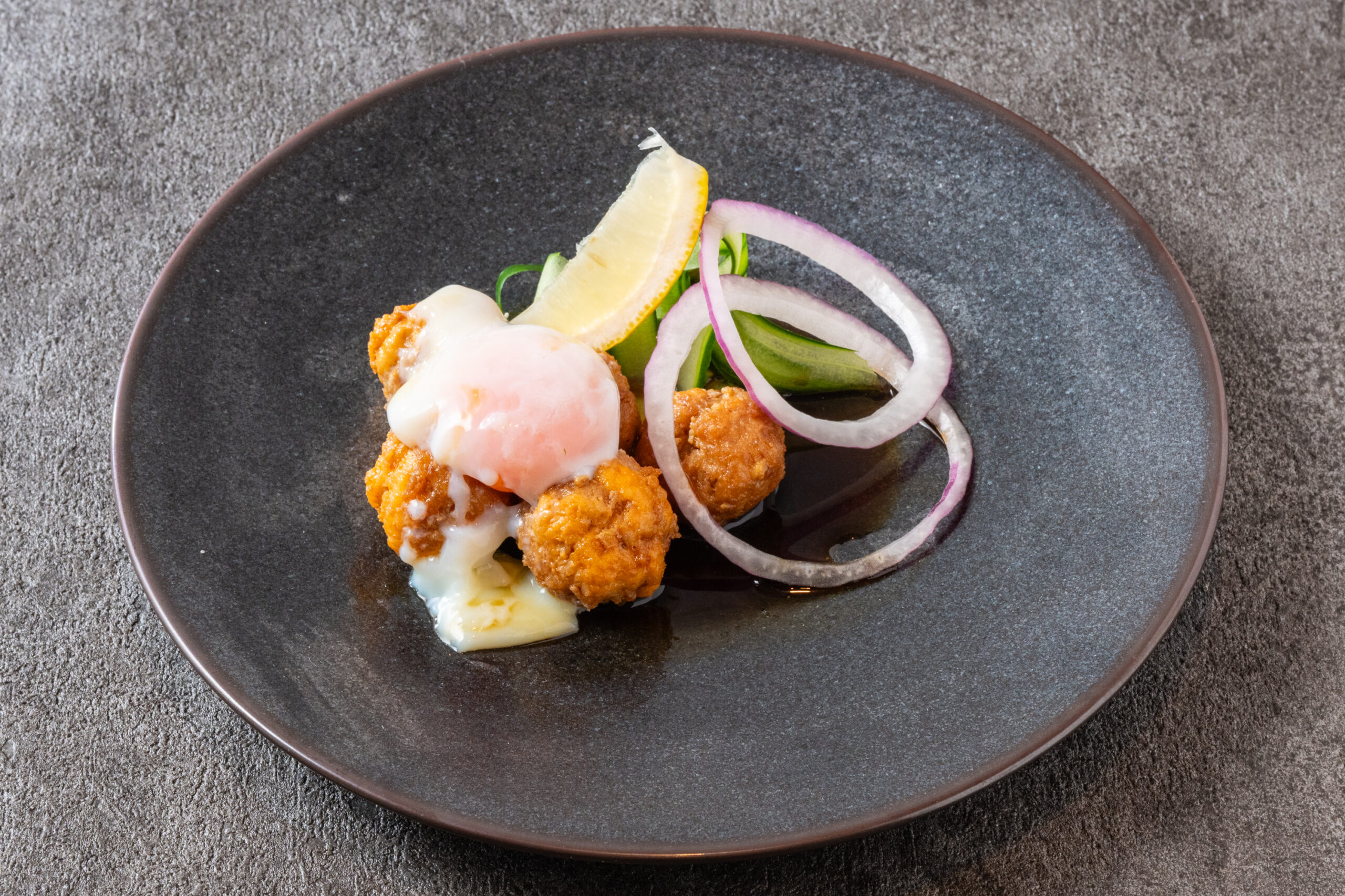 マリネサーモンのレアカツ 〜2種類のソースで〜